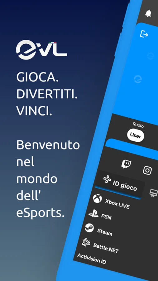 EVL è la nuova piattaforma eSports che ti permette di competere nei giochi più famosi, creare team e vincere competizioni con altre migliaia di persone!