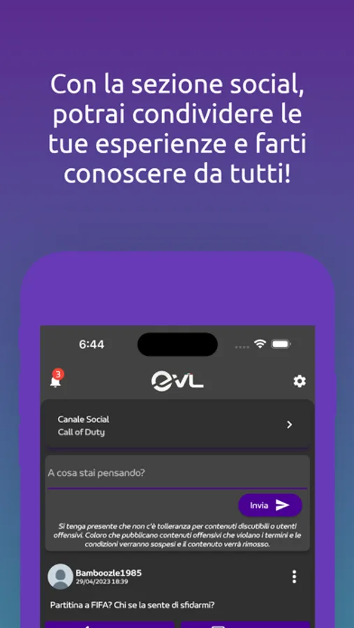 Condividi e confrontati con la community di EVL! Potrai creare post, mettere Mi Piace e commentare la community in modo semplice e veloce! Inoltre, avrai la possibilità di fare nuove conoscenze e di scambiare messaggi in modo privato con chiunque tu voglia.