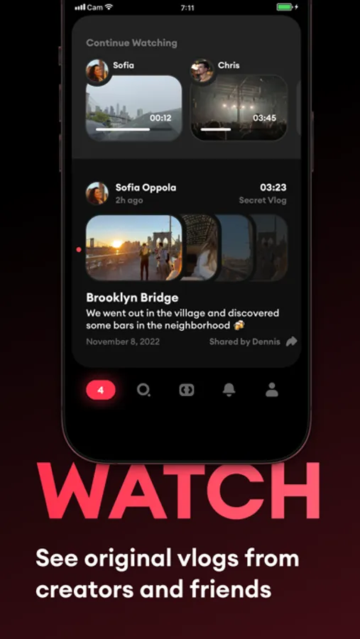 Follow your friends or explore exciting creators to see the latest original vlogs in your watch feed.