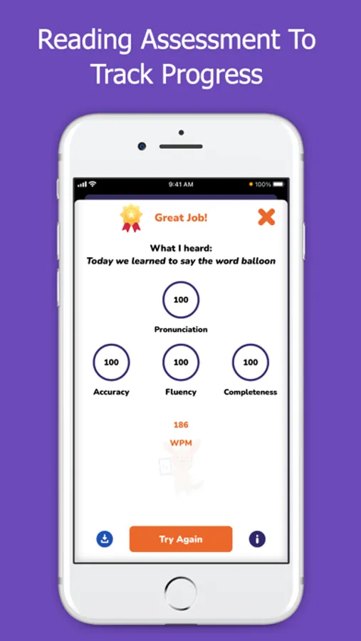A built-in reading assessment helps take a snapshot of the child’s reading capabilities. Parents and guardians can monitor the child's reading proficiency, completeness and fluency and offer help in areas that need improvement.