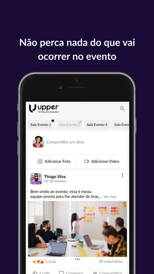 Com o aplicativo da Upper ADucation você tem acesso a uma rede social exclusiva. Dentro dessa comunidade você pode fazer novos contatos, enviar perguntas aos palestrantes, trocar mensagens com outros participantes e interagir com a comunidade. Além disso, você pode consultar a programação, avaliar conteúdos, dar feedback e responder quizzes. Utilize o APP e aproveite ao máximo os recursos.