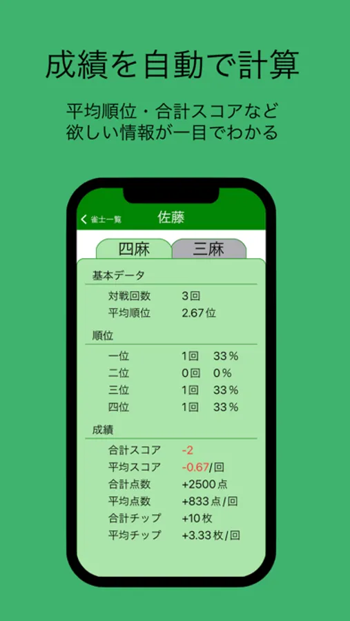 「麻雀管理」は麻雀の点数計算と成績を管理するアプリです。