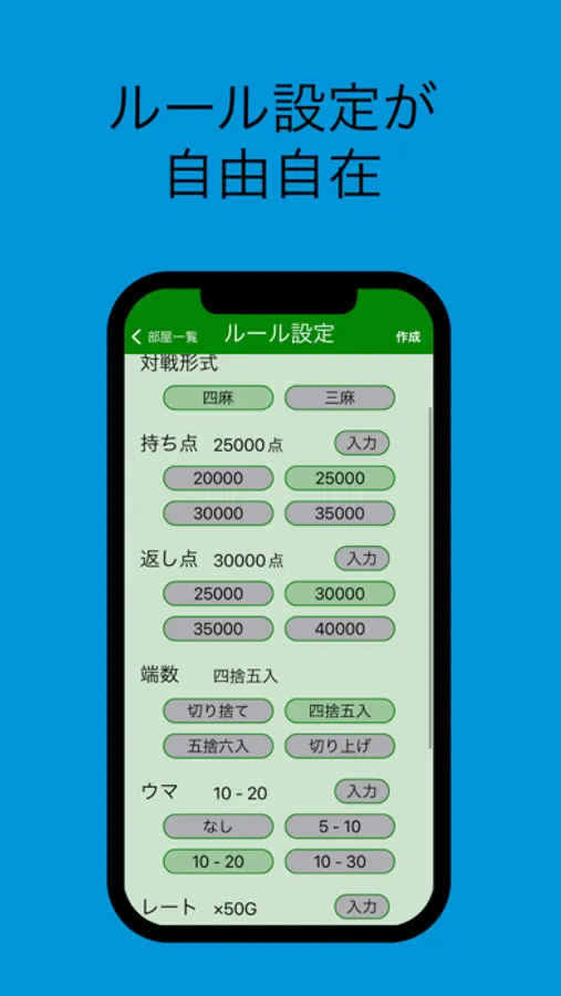 ルールを決めて部屋を作ったら、結果を入力するだけで自動でスコアを計算します。
