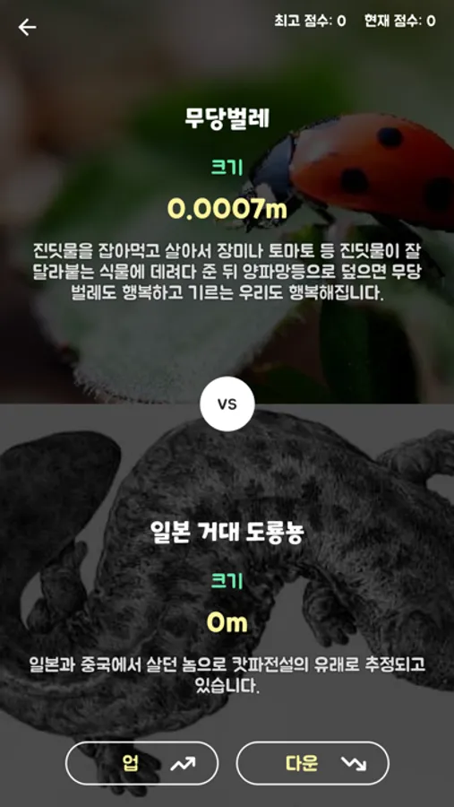 The Higher lower game 이나 더 많이 더 적게와 같은 국내판 상식 퀴즈 게임입니다.