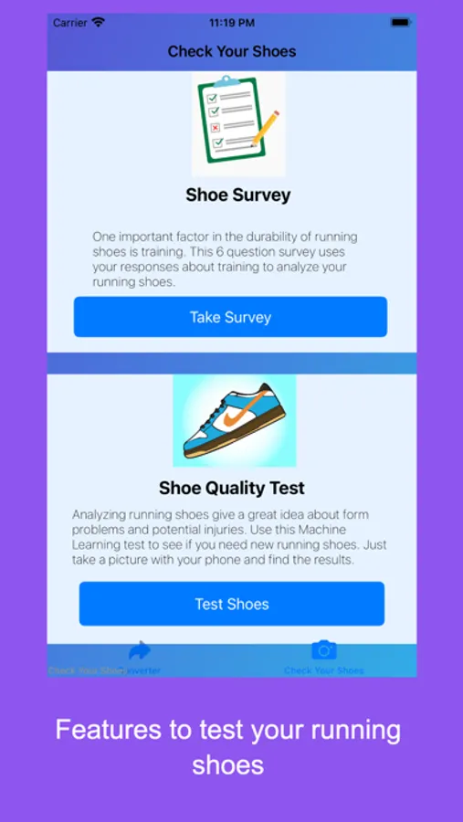Fast and Fit helps you to analyze your race performance and stay injury-free by making sure you have good quality running shoes. The Running Time Converter predicts race times from 600m up to 10k. The Machine Learning Tool uses pictures to check the quality of your running shoes and identify any problems. Learn information about different form problems and injuries. Seek doctor's advice before making medical decisions.