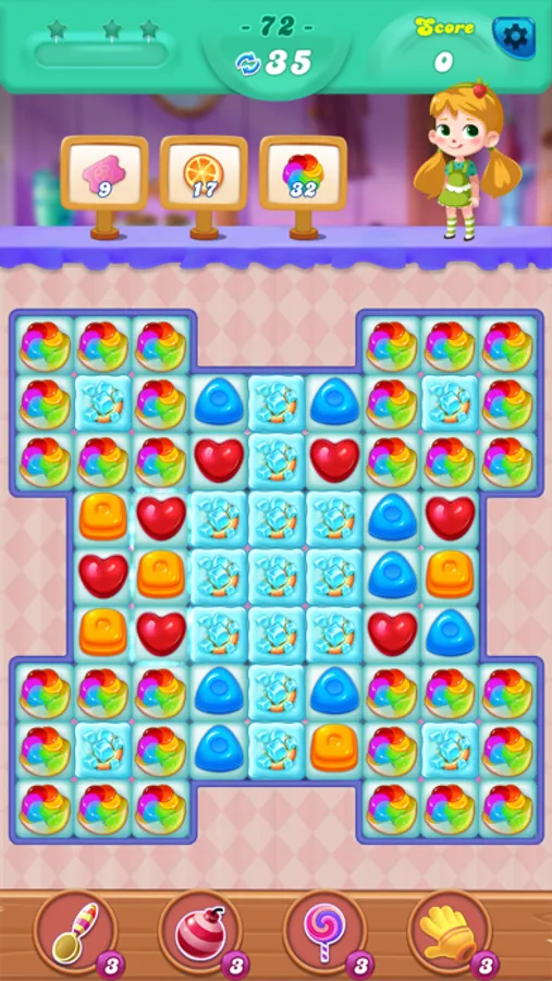 Match 3 or more candy of the same color and earn unique boosts with special matching combinations.