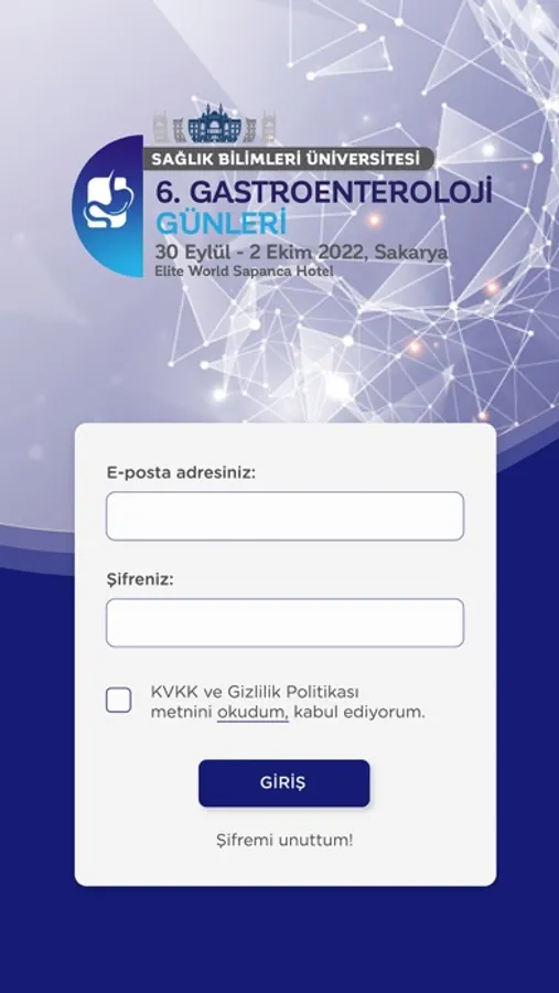 Kayıt yaptırmanıza rağmen e-posta adresinize bir şifre iletilmediyse lütfen https://gastroenteroloji.sbugunleri.org/ adresindeki e-posta adresi veya telefon numarası üzerinden bizimle iletişime geçiniz.