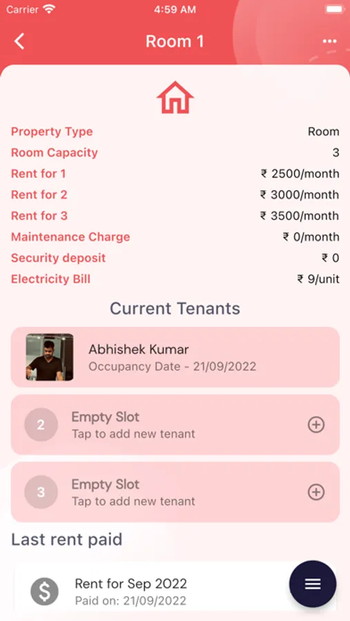 There can be multiple buildings owned by one owner. In each of these locations, he can add properties. Each individual property can have its own electricity, water, maintenance, and security charge. Owners have ability to send reminders to tenants regarding rent payment. There are also various reports available to owners, such as a list of dues and total electricity and water consumption.