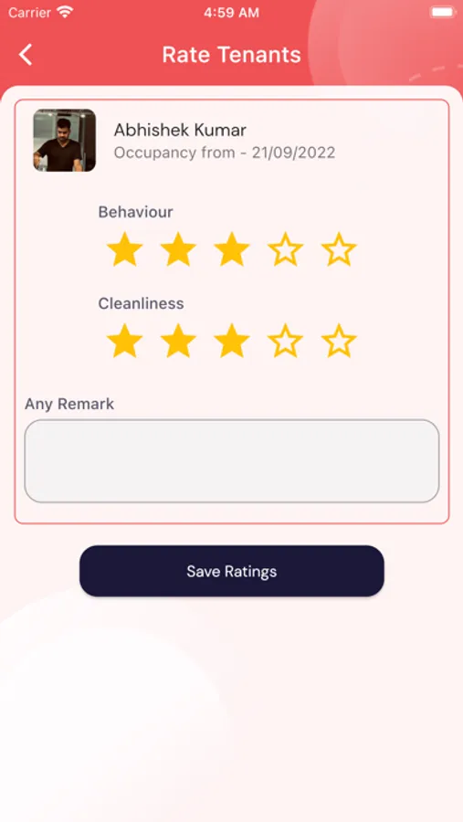 A tenant management app that supports all features to manage tenants in a home, flat, or shop. Upon vacating a property, owners can rate their tenants on their behavior, cleanliness, etc. The owner can also view the ratings or previous reviews of any new tenant.