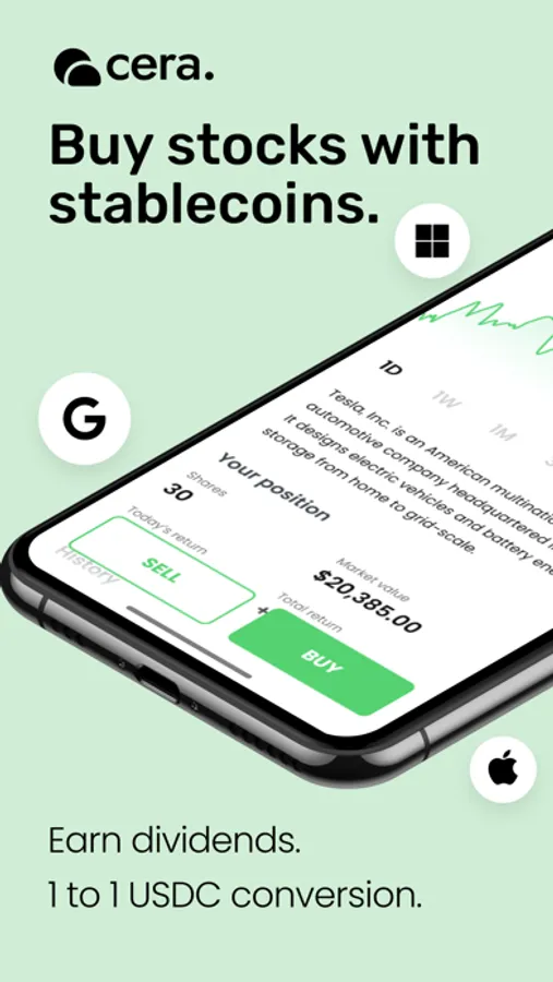 Cera is the world's first exchange to securely buy and sell US stocks with your stablecoin deposits. Trusted by global top-tier VCs like YCombinator, we bring one-of-a-kind investing opportunities to user across 100+ countries.