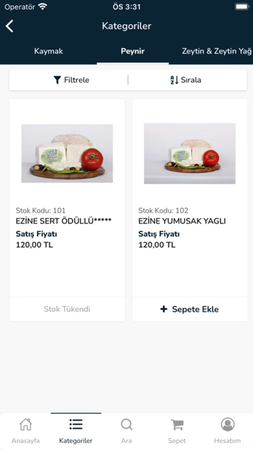 * Ürün kategorilerinde filtreleme yapabilirsiniz.