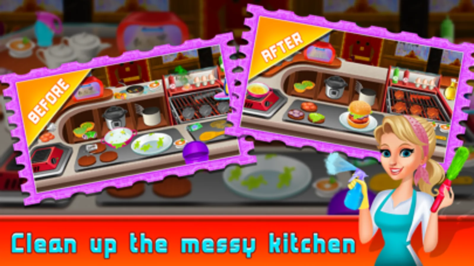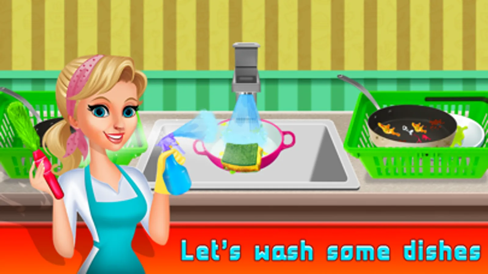 Your whole restaurant management experience is now in one place! At the end of the day, clean the restaurant kitchen; throw garbage into the dustbin; wash dirty dishes, plates, and cookware; and arrange them in the right place. Now you are ready to cook some fast food.