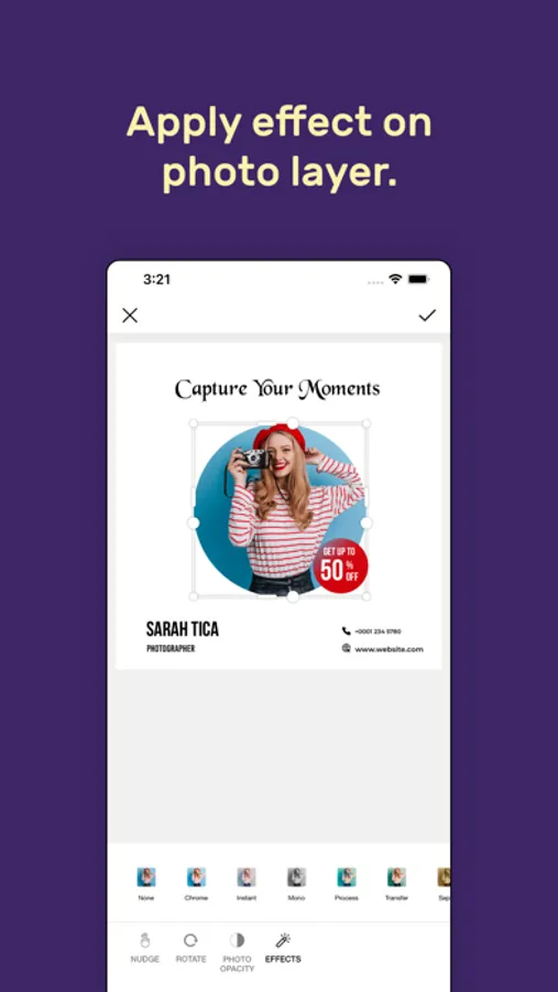 Customize your work, select or upload your own images, try different layouts, add text to photos, and apply effects and filters.