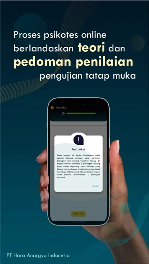 Aplikasi online assessment Hara Anargya adalah produk utama PT Hara Anargya Indonesia yang dapat menggantikan proses tes psikometri secara tatap muka. Metode ini akan membantu Anda mendeskripsikan profil psikologis, baik aspek kognitif maupun kepribadian, untuk tujuan tertentu seperti seleksi karyawan, pemetaan bakat individu, tujuan akademik, dll.