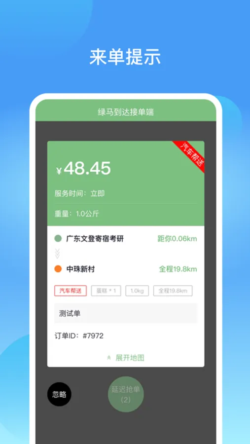 绿马到达,全汽车跑腿跑腿,专业配送蛋糕、鲜花。