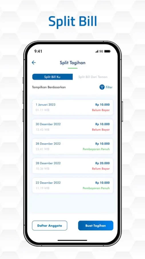 9. Split bill untuk memudahkan sharing pembayaran antar keluarga/teman/mitra.