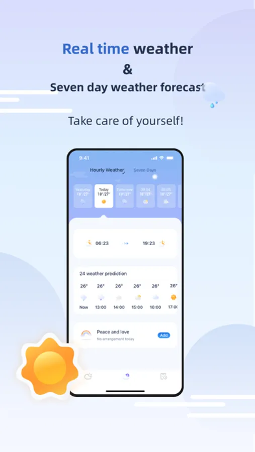 Daily Weather provides real-time weather forecasts and 7-day weather forecasts. You can create items,Daily Weather can be reminded before the items come. Don't delay your appointment because of the weather.Daily Weather will display accurate weather information for you, including sunrise and sunset, air humidity, wind force, etc. Provide you with reference information on various weather aspects.