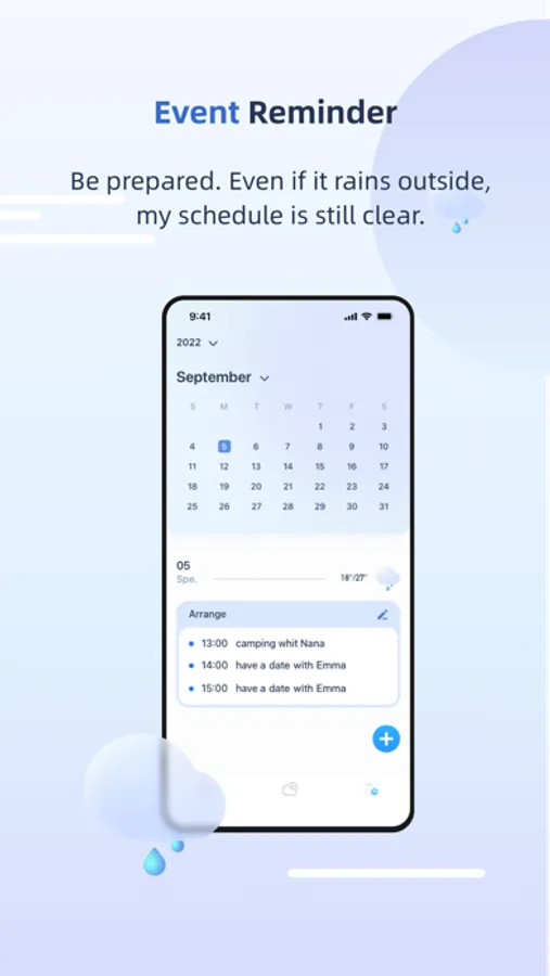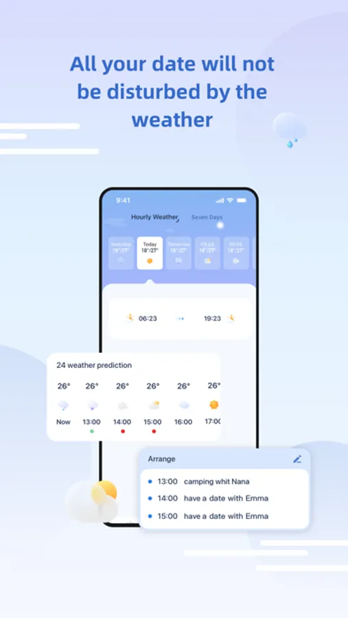 You can set up an event schedule in advance, and we will remind you before the event occurs. With regard to some important matters, you don't have to be at a loss because of the weather anymore. The weather will no longer be an obstacle to your date.