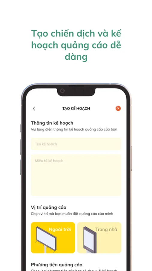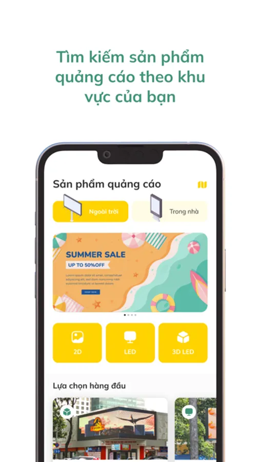 Ứng dụng booking biển quảng cáo 2D, LED, 3D trong nhà và ngoài trời, tạo chiến dịch quảng cáo và kiểm tra ngay trên điện thoại.