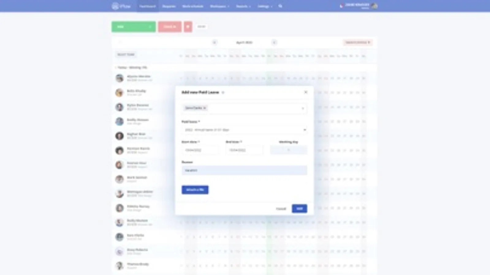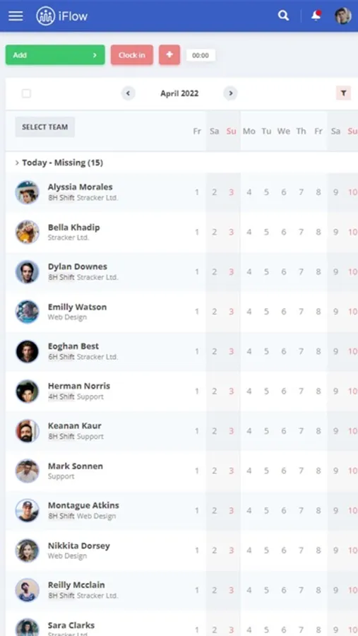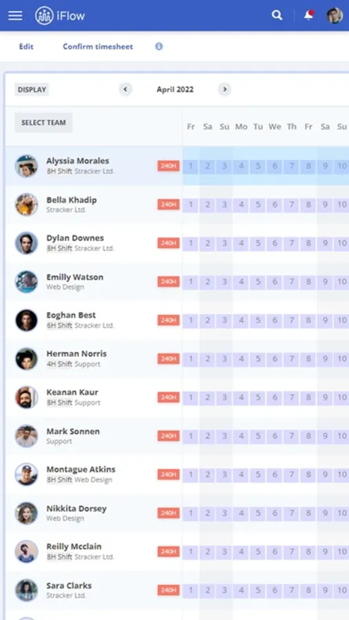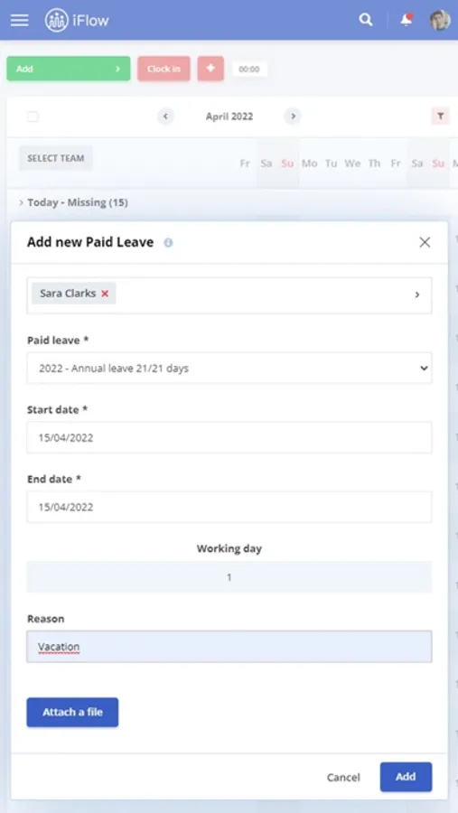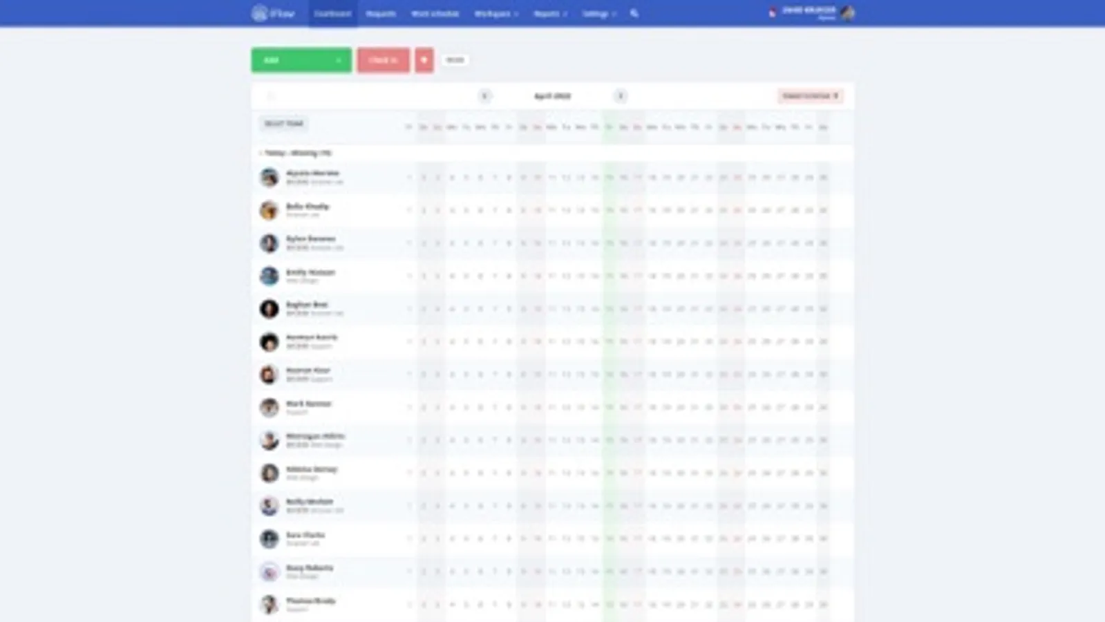 Leave management. iFlow enables employees to register their own leave requests via any device, such as phones, laptops, or RFID devices. The app sends instant notifications to managers and HR admins about the pending solicitation. Therefore, employers are always up-to-date with their employees’ availability to work and can schedule work shifts accordingly.