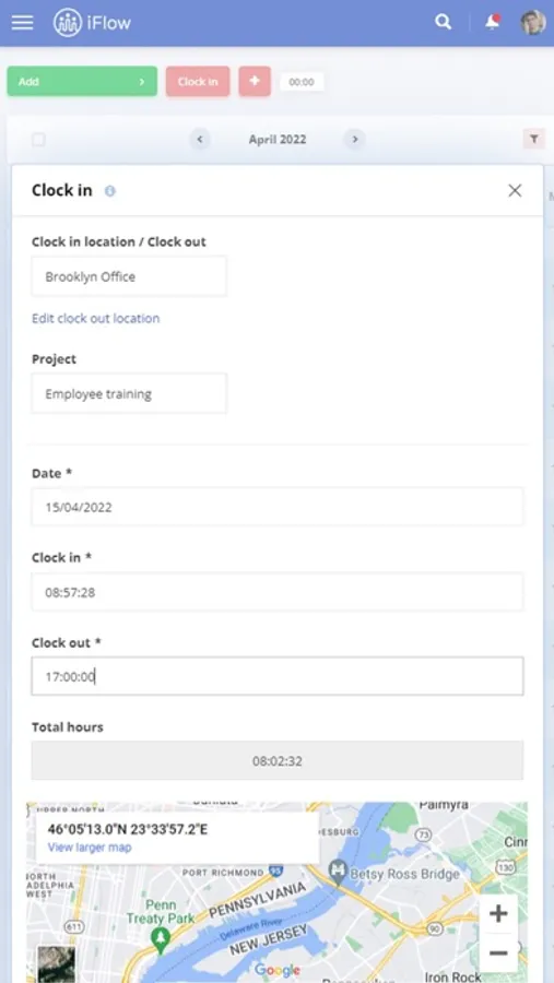 Easy clock-in through various means. With iFlow, any device can be used as a secure and correct clock-in instrument: smart phone, laptop, PC, and RFID systems. Even without giving employees access to the app, they can still clock-in using alternative ways of punching-in, through PIN code, web link, or QR code.