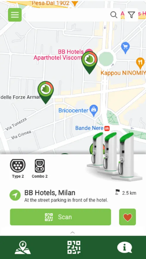 Avrai a portata di mano la mappa con i punti di ricarica, la distanza ed i