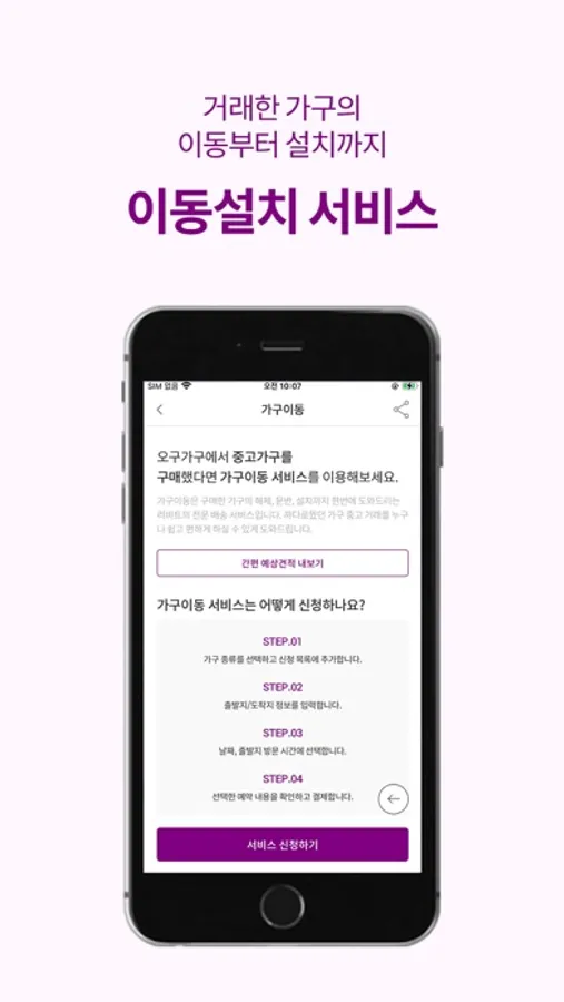 개인간 오고가는 중고가구를 편하게 거래하고 이동, 설치까지 원스톱으로 해결하세요.