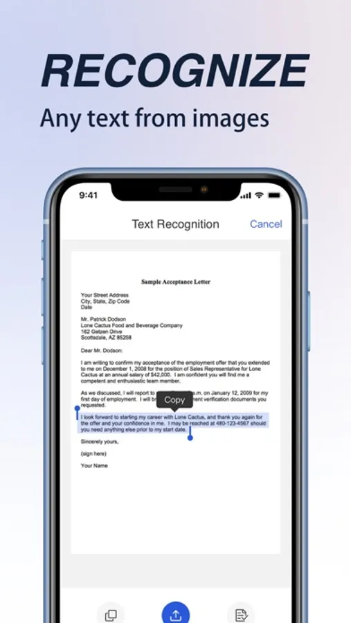 HD Scanner supports image processing, which can convert, rotate, and beautify your images to get the best document quality, built-in top-level OCR engine, quickly convert pictures to text.