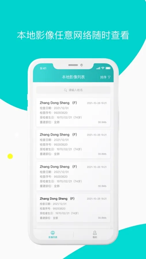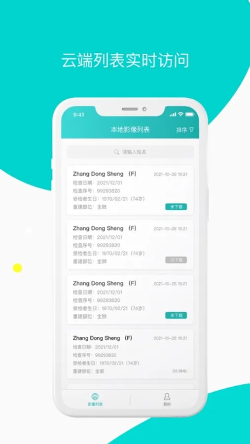 软件提供离线缓存,本地数据及云端数据搜索、排序、查看等功能,对于三维模型及CT进行阅览。