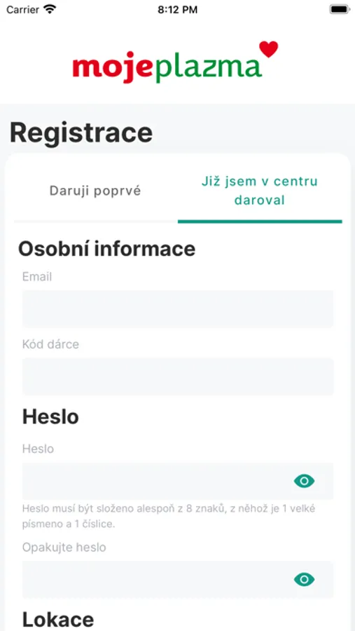 - registraci dárce v plazma centru