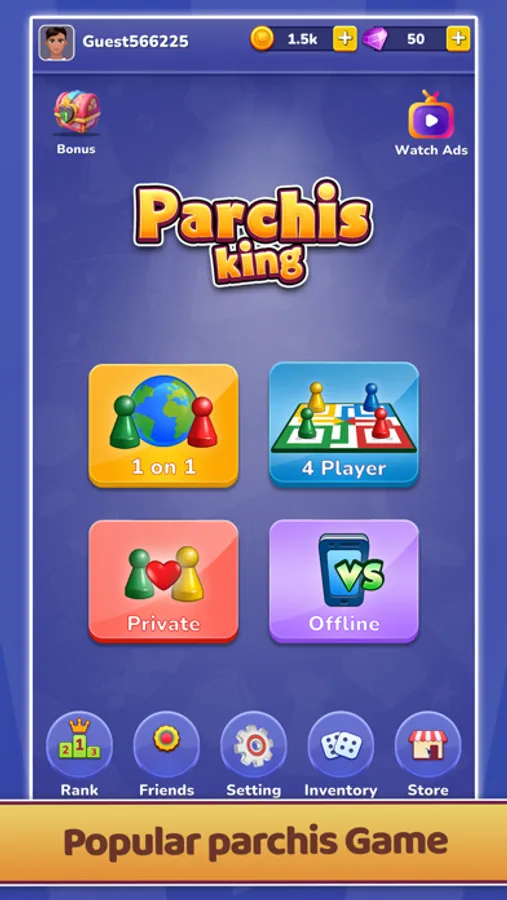 Parchisi is a dice-based board game of the cross and circle family. It is an adaptation of the Indian game pachisi. Parchís was a very popular game in Spain at one point as well as in Europe and Morocco - specifically Tangiers and Tetouan, and it is still popular, especially among adults and seniors. Since it uses dice, Parchis King is not usually regarded as an abstract strategy game like chess or checkers. It does not depend fully on luck either, since the four pawns under a player's command demand some sort of strategy. parchis game is also known by different names in all other games
