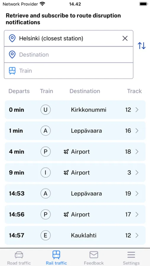 Junaliikenne-osio tarjoaa täysin reaaliaikaisen näkymän kaikkiin suomen kauko- ja lähiliikenteen aikatauluihin ja junien kulkutietoihin. Voit tallentaa vaikkapa työmatkasi suosikkireitiksi ja saat välittömästi tiedon, mikäli reitillä on häiriöitä tai muutoksia.