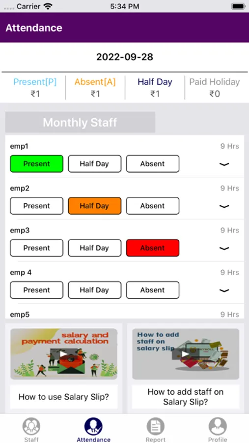 Salary slip helps you to manage all your staff and employees on your mobile using this free digital employee management app. Replace traditional methods of doing hisab kitab and book keeping using salary books and for tracking staff and employees salary & attendance of staff.