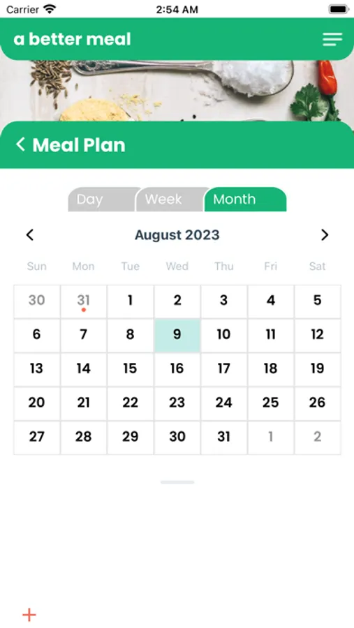 * Monthly meal planning functionality