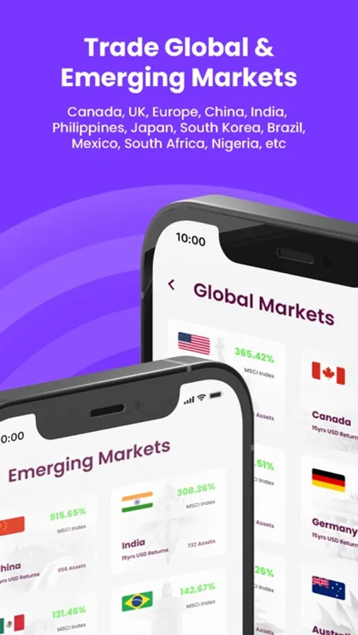 Global Markets like Canada, UK, Germany, Hong Kong, Singapore, Australia, Japan, etc. Global Markets offers diversification benefits