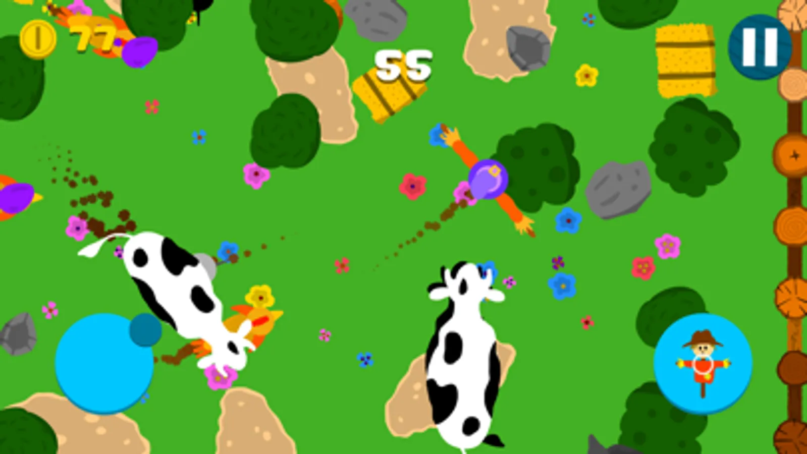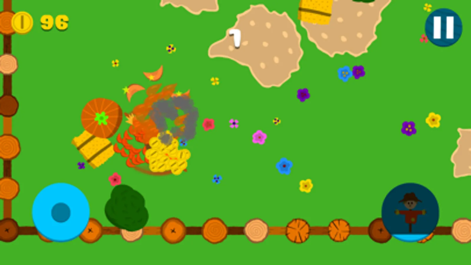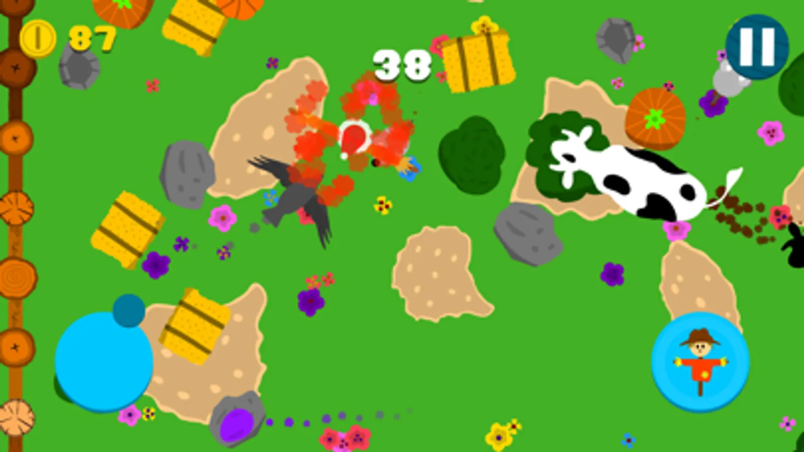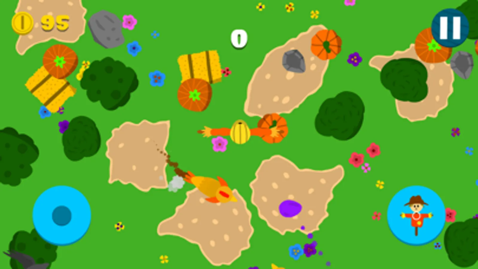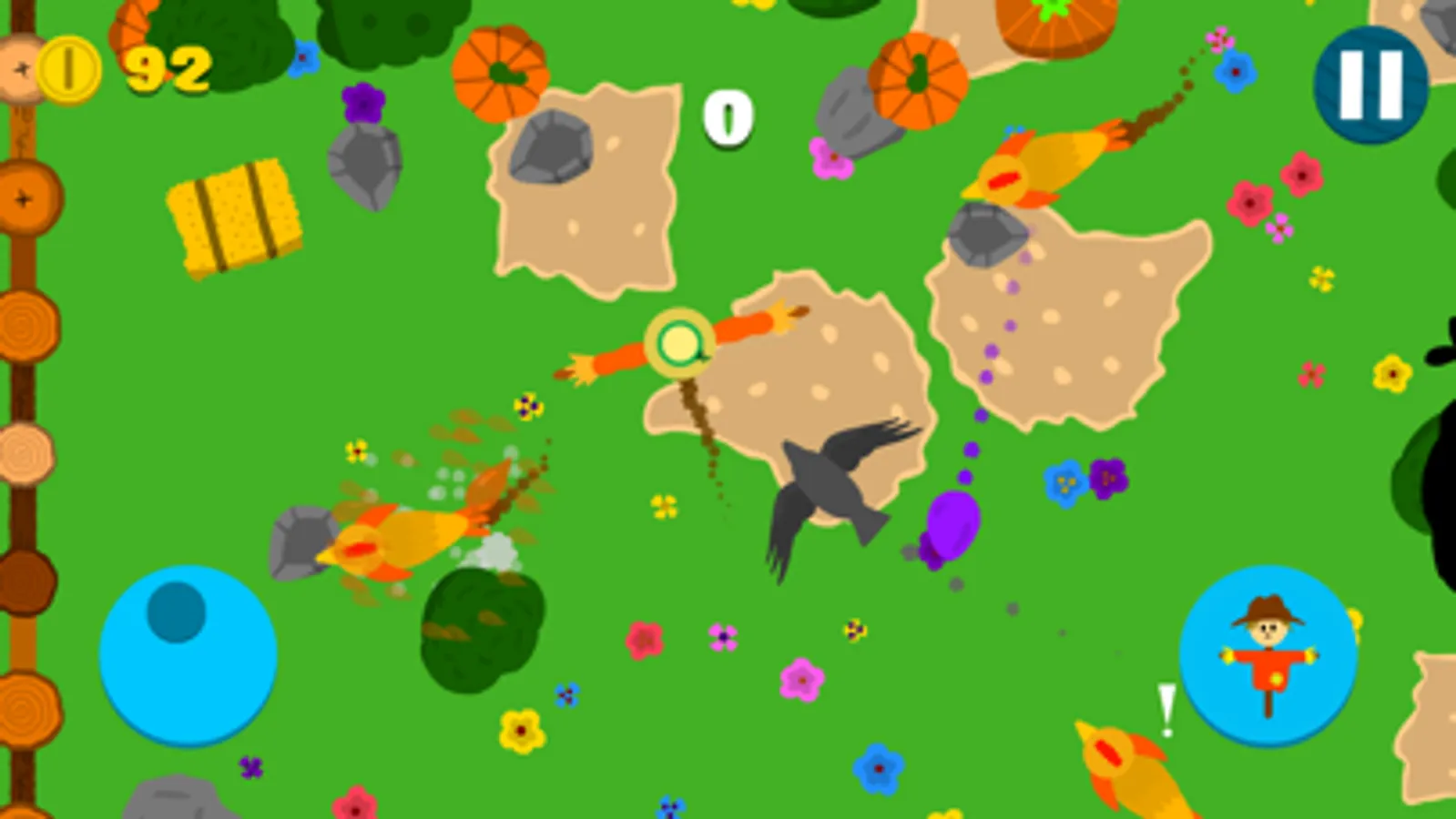 - Use the joystick to move the scarecrow
