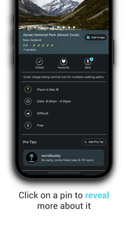 Add your created pins to the world buddy server to have it land on the main map, add your own protip about the location to help guide other travelers.