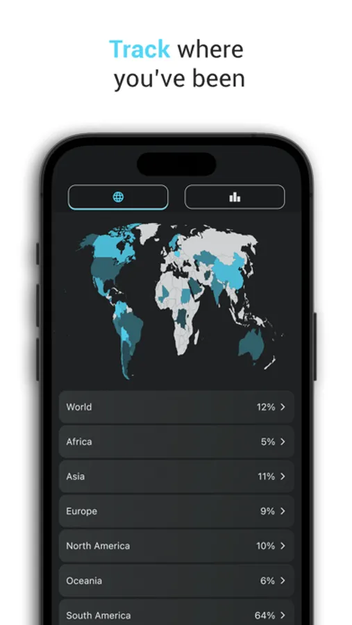 Inside our progress page, you can track all the countries you’ve visited with our interactive scratch map. The scratch map visualizes your visited countries and lists your total percentage in every continent. As well as track progress of your achievements within the app of places you've been, markers uploaded and marker accepted to the WorldBuddy main map!