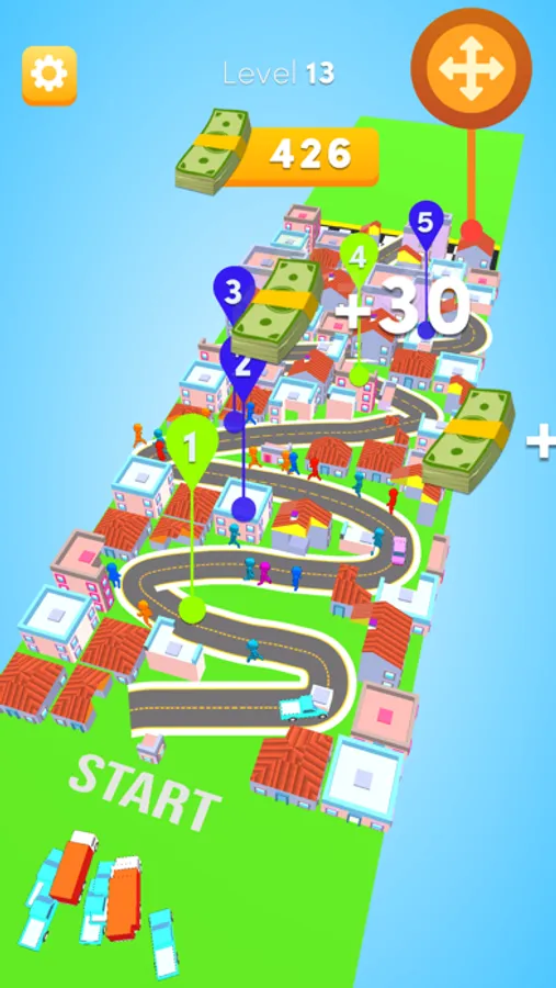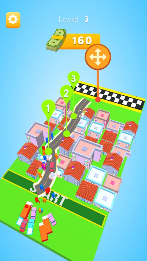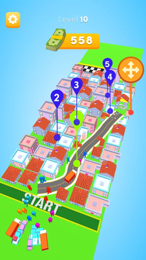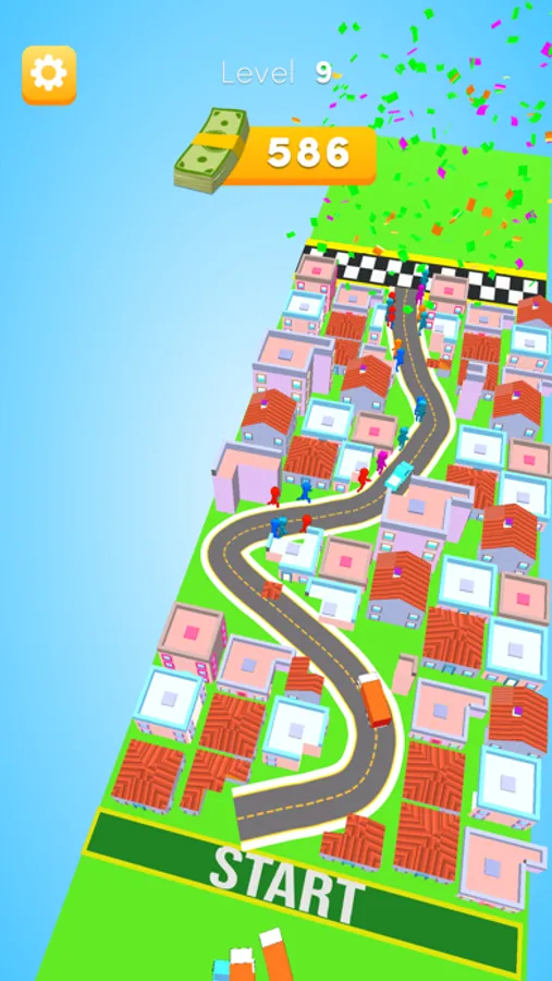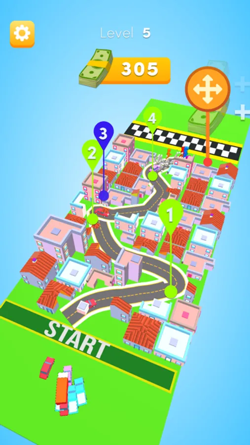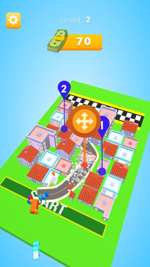 Create your path by destroying the buildings and reach the finish line. Connect the dots to earn more money and open more roads.
