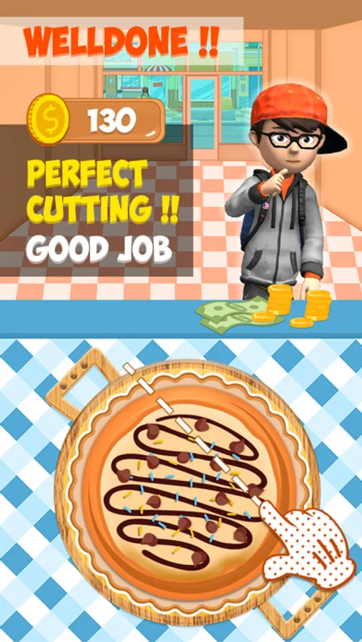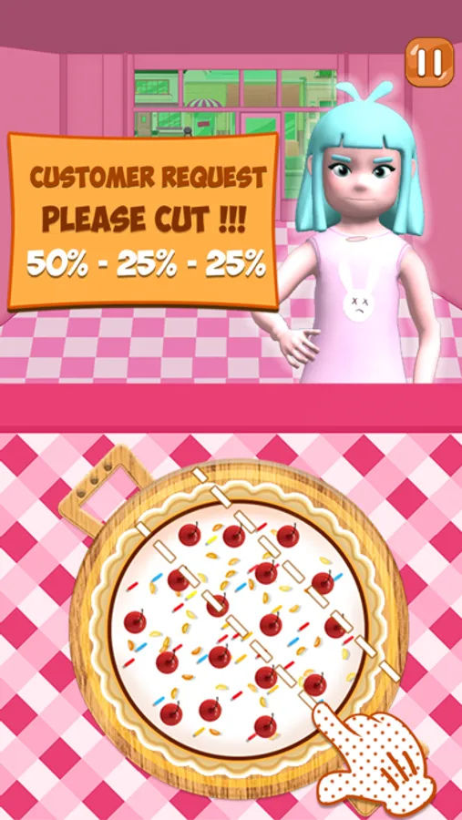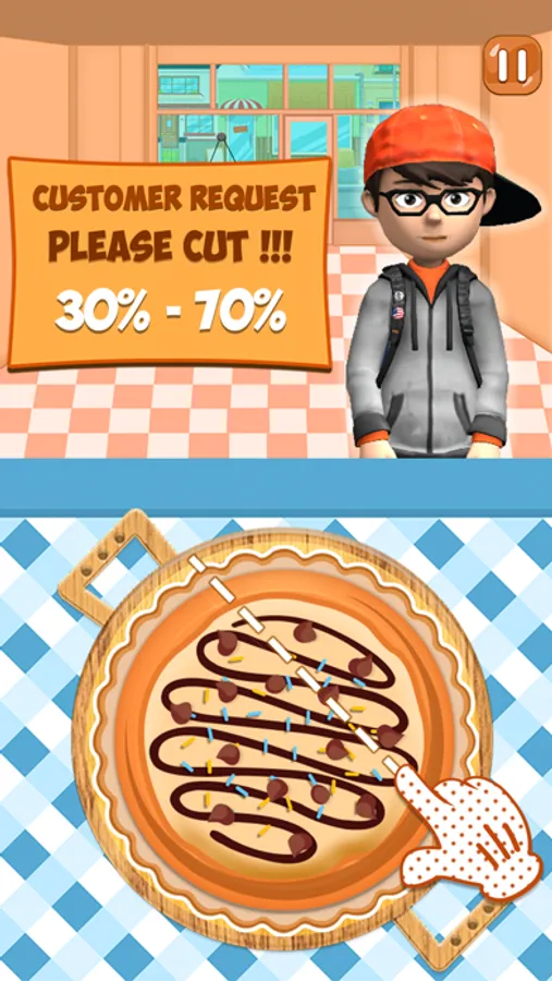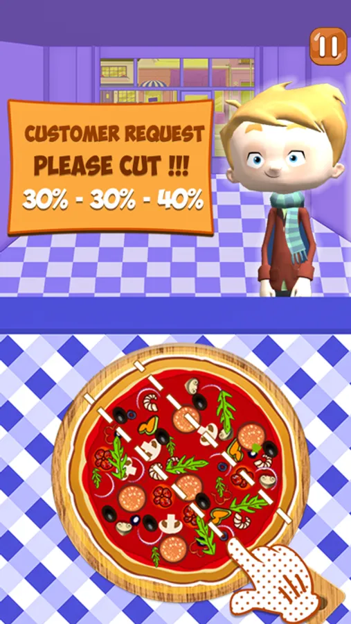 • Challenging percentage slicer: As it is a stimulating brain puzzle, it brings challenges with every upgrade of pizza and cake variety. You will find different shapes of pizza and cakes in the shop that makes the food cutting tasks a bit hard. Moreover, the précises percentage requested by customers makes it more difficult for the player, e.g. 30% + 30% + 40% on heart-shaped pizza. However, you can master in pizza and cake cutting by practicing your chef cutting skills.