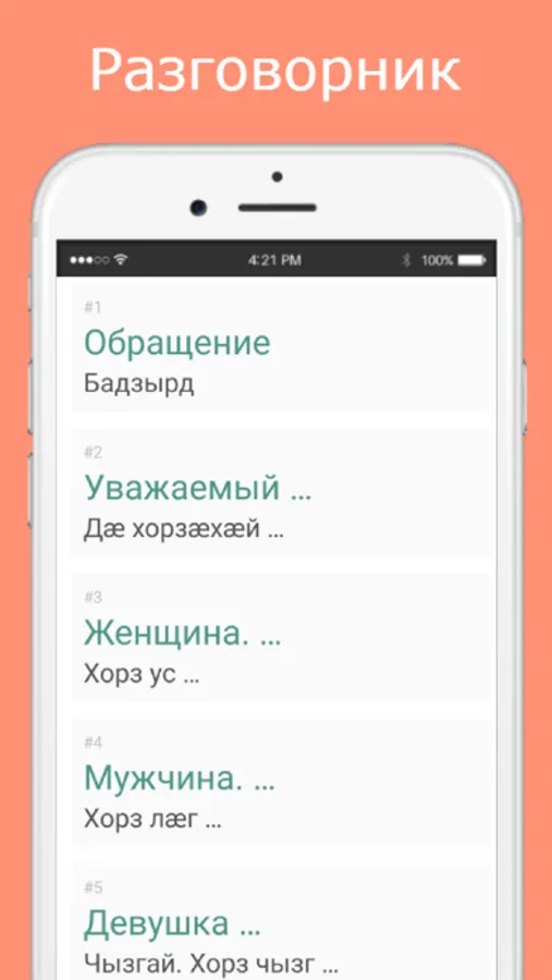 Русско-осетинский разговорник можно использовать соответственно, как разговорник, так и инструмент для изучения осетинского языка. Все осетинские слова написаны русскими буквами и разбиты на 10 логических тем, то есть разговорник рассчитан на русскоговорящего пользователя (туриста).