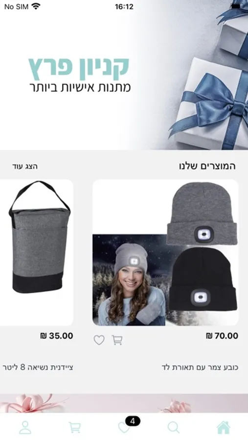 אתם מוזמנים לטייל באפליקציה ולבחור את המתנה המושלמת לאהובים שלכם