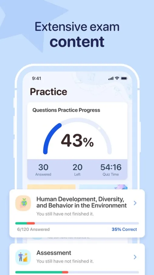 You can currently use this app to prepare for your Bachelor of Social Work (BSW) Exam, The Master of Social Work (MSW) Exam and The Licensed Clinical Social Worker (LCSW) Exam.