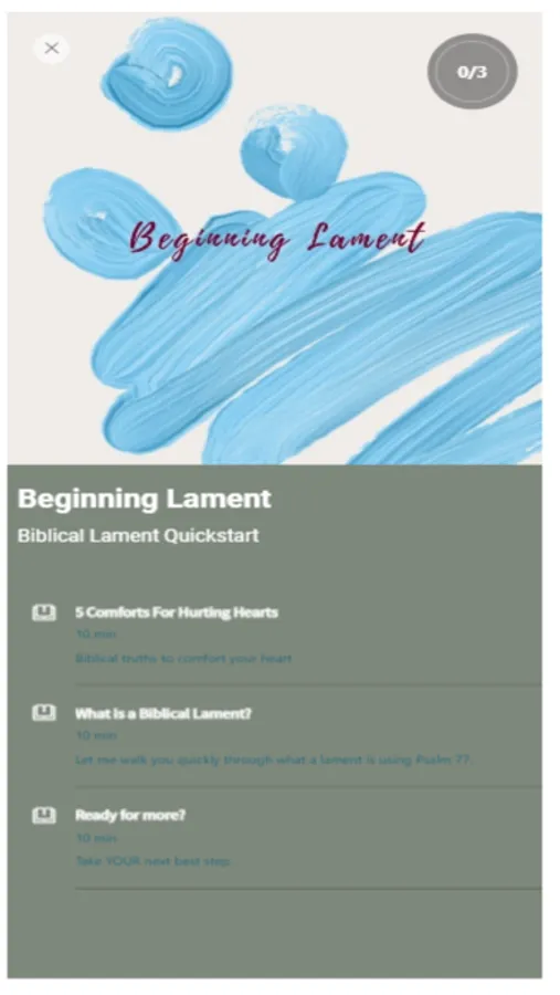 "This app has encouraged & better equipped me to acknowledge my experience of loss & hurt, while simultaneously resting in the Lord’s character and his love & provision" - Emma