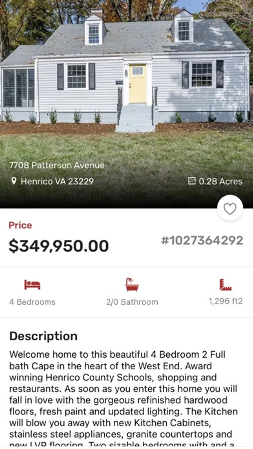 Encuentre listados de bienes raíces en Virginia Central en versiones en español e inglés. ¡Conéctese con su agente a través de la aplicación para chatear, programar visitas y encontrar la casa de sus sueños!
