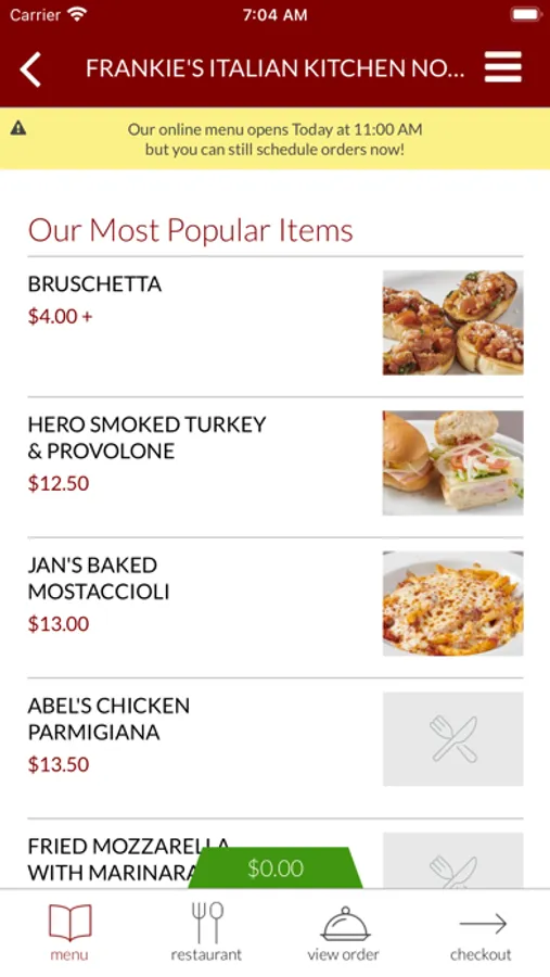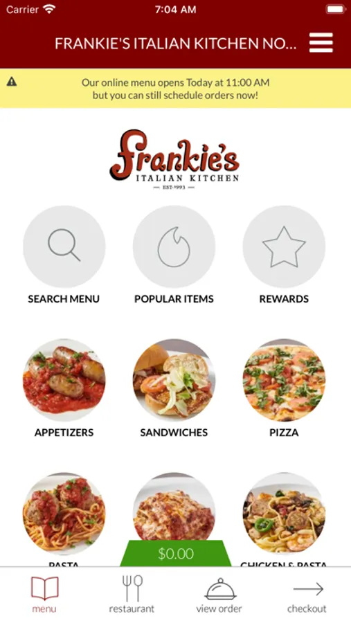 Order from Frankie's Italian Kitchen. Now you can save and reorder, save custom menu items and order with a snap!
