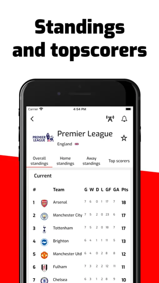 Football live score brings you the latest results from the world of football. Stay updated with live games, events, fixtures, standings, and top scorers all in one convenient app.