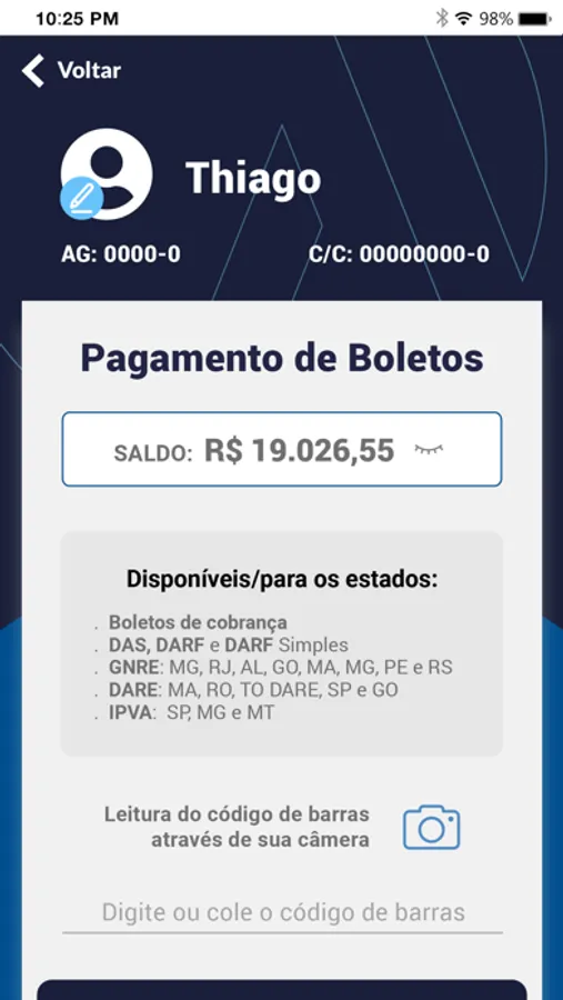 Conta PF, Conta PJ, PIX, Cartões, pagamento de contas e emissão de Boletos.