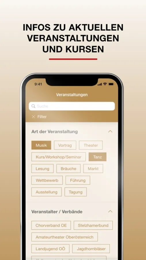 Gemeinsam mit den seinen Landesverbänden stellt der Dachverband „OÖ. Forum Volkskultur“ folgende erste Funktionen in der App zur Verfügung: