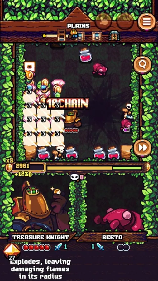 • Bump into enemies to battle them and trade damage in a unique, hybrid combat system. Group enemies together for massive chain attacks while grabbing keys, power-ups and potions to refill your health!